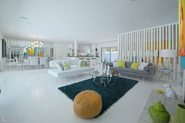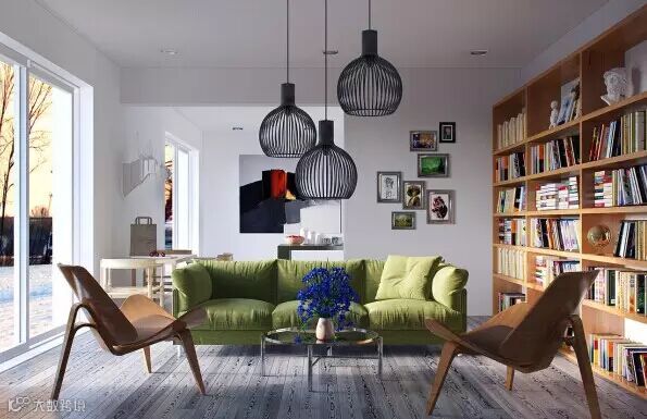 跳跃的绿色,为客厅增添一丝生气,和木质的家具搭配,散发出天然的气息。