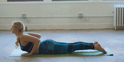 5.上犬式,不要耸肩,柔和的向上向后伸展,不要给腰部和手腕太大的压力。