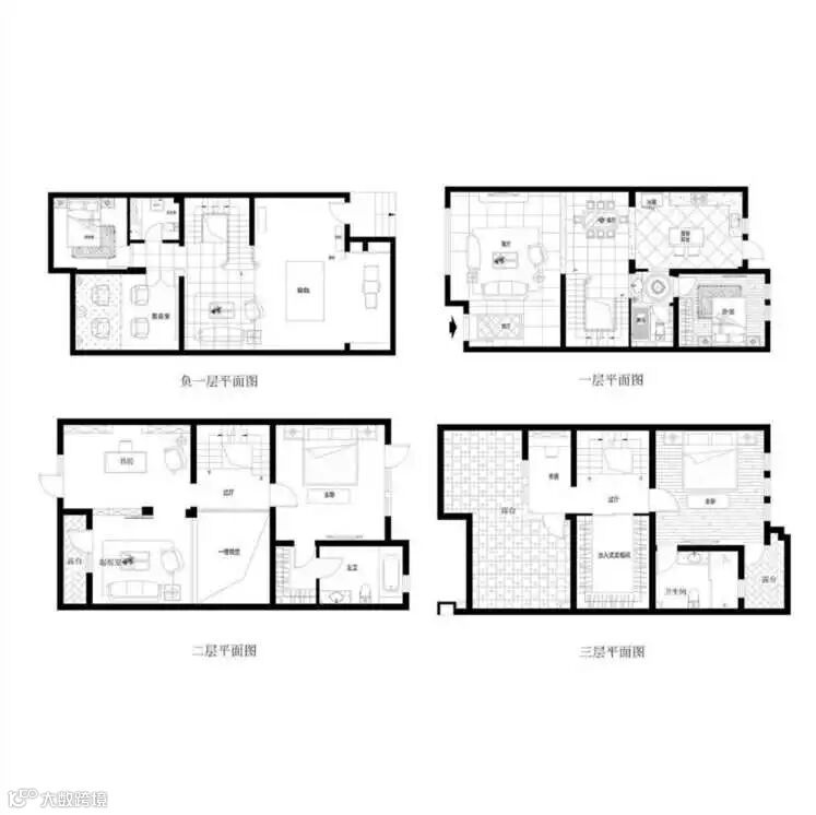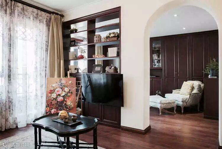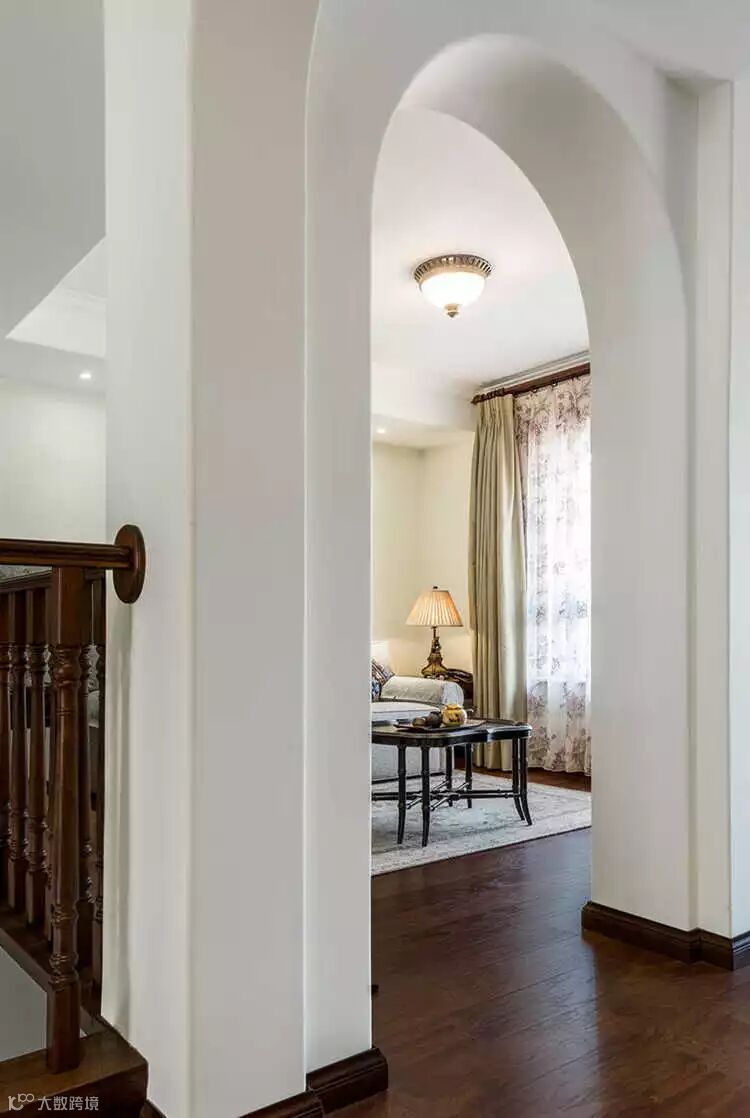➥将普通的方形洞口改为拱形的门洞,使空间看上去很立体、硬朗,同时增加了采光度~