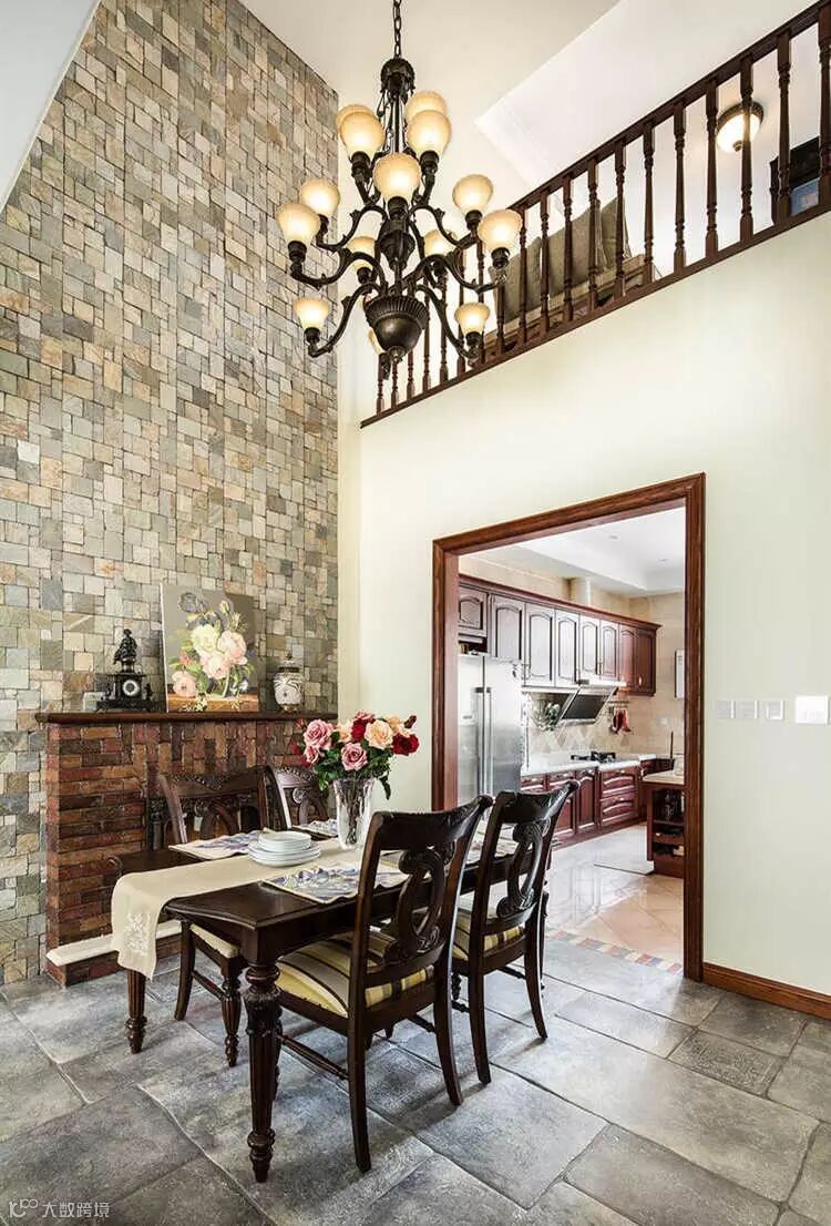 ➥地面选用复古砖,配合立面原石,餐厅古朴自然~