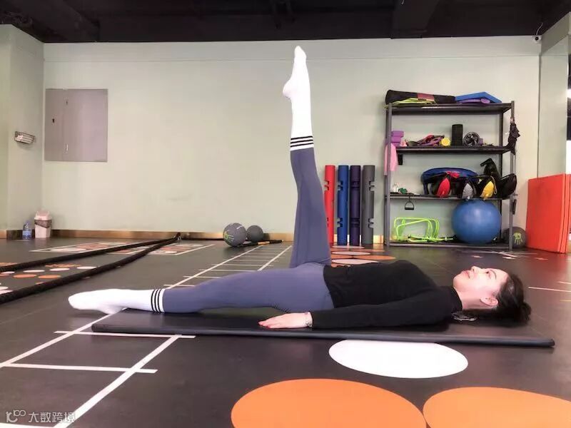 动作要求:双腿伸直,两腿贴垫伸展,脚尖轻轻绷直,双臂沿体测伸直,掌心向下,肩胛骨保持稳定。吸气伸直一腿吐气朝一个方向画圈5次,然后另一方向画圈5次。