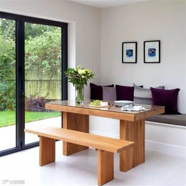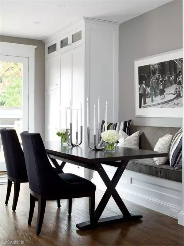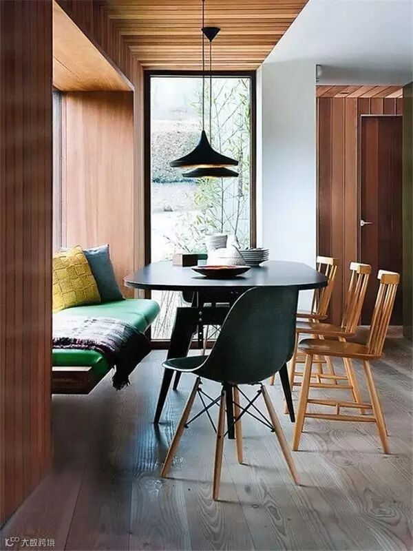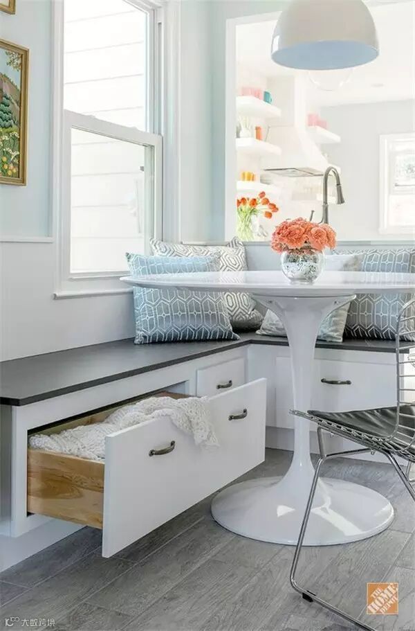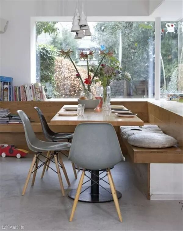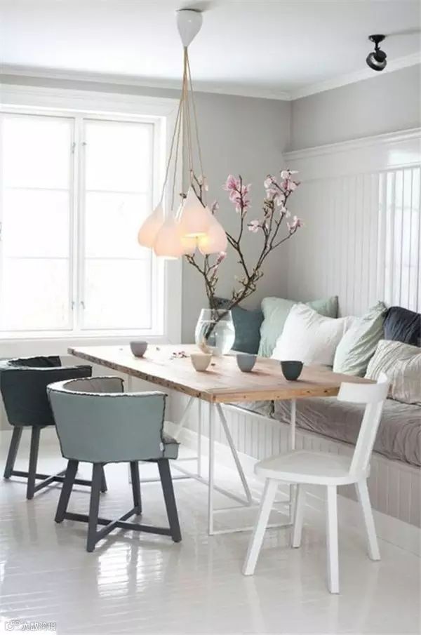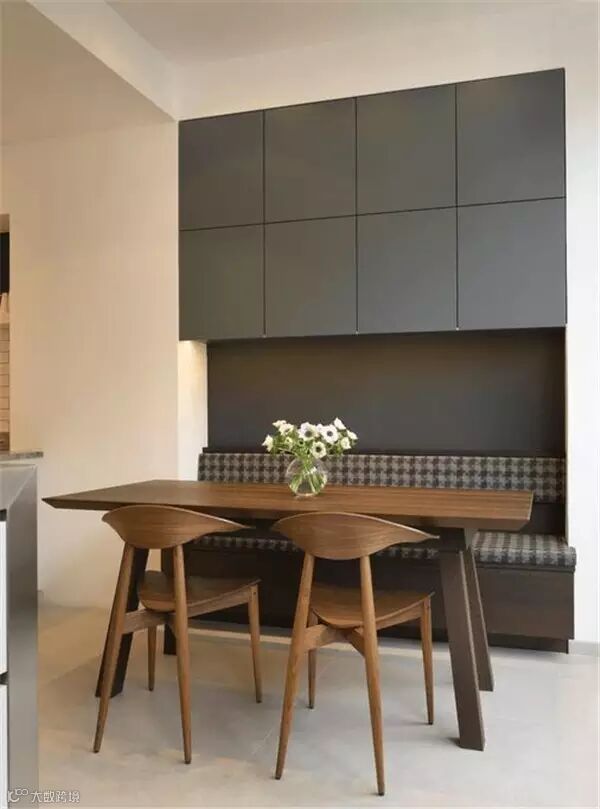 如果家里是小户型,餐厅与客厅是一体,那么可以尝试卡座式的餐厅设计。既利用了边边角角的小空间,还舒适美观,给你亲临卡座餐厅式的小浪漫。
