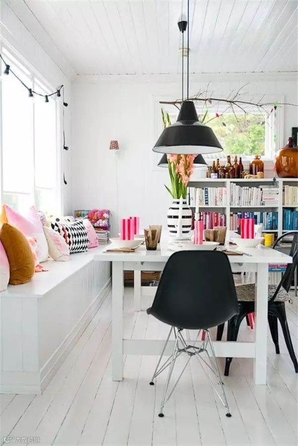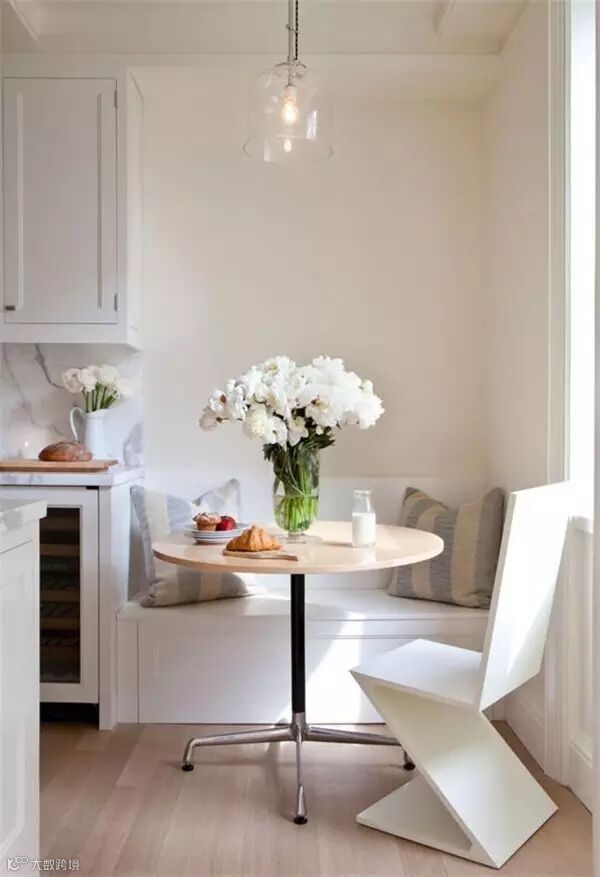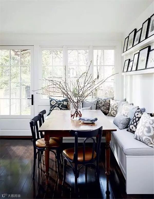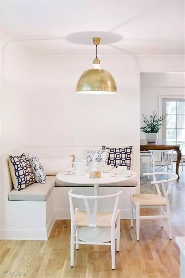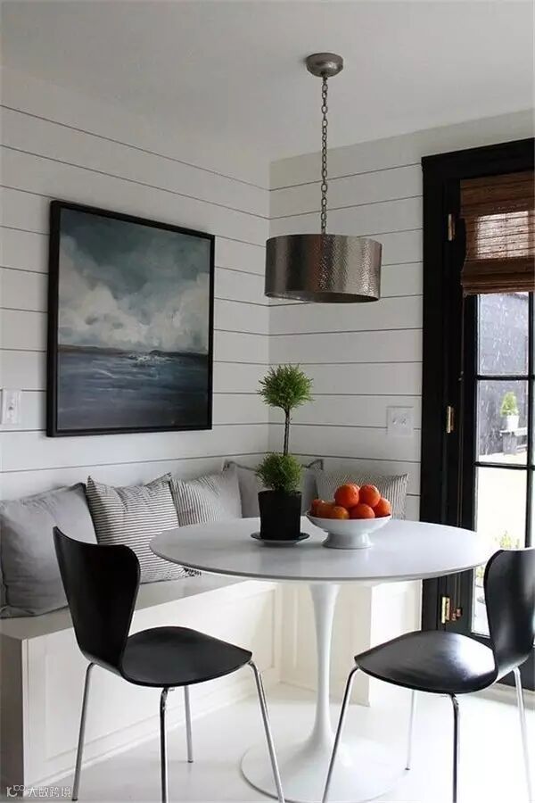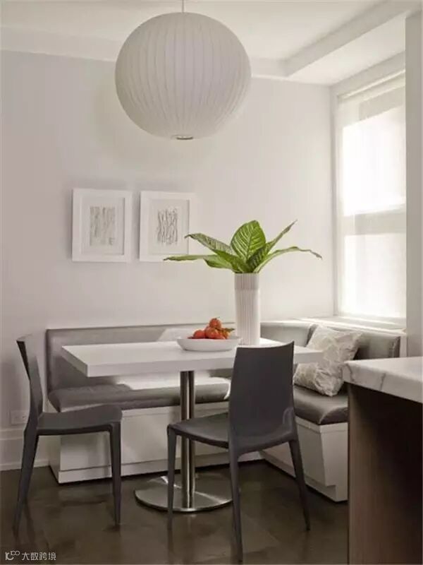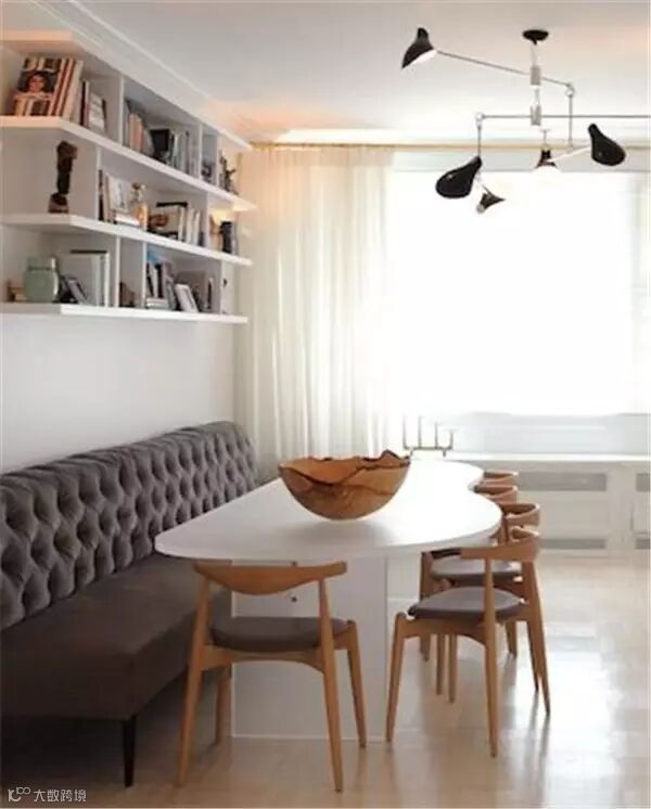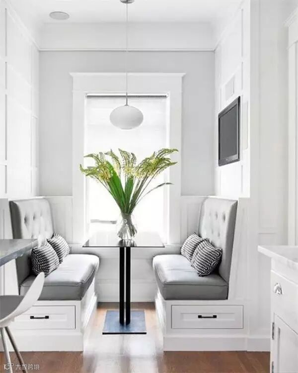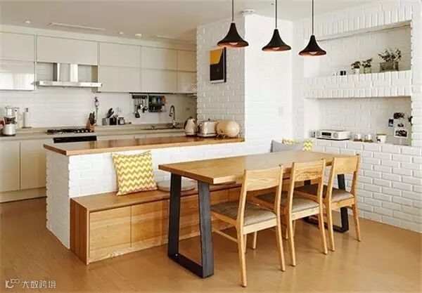 导读:如果家里是小户型,餐厅与客厅是一体,那么可以尝试卡座式的餐厅设计。既利用了边边角角的小空间,还舒适美观,给你