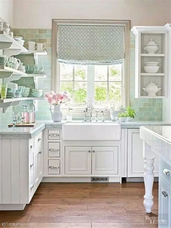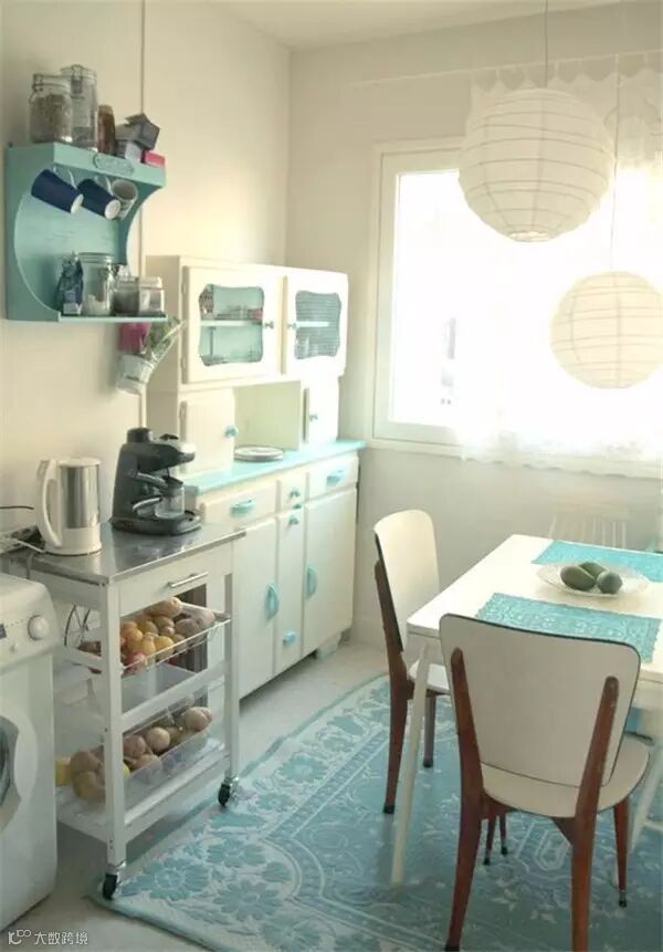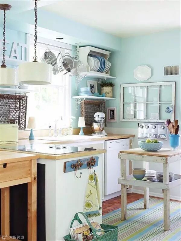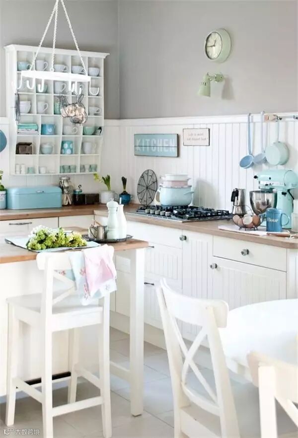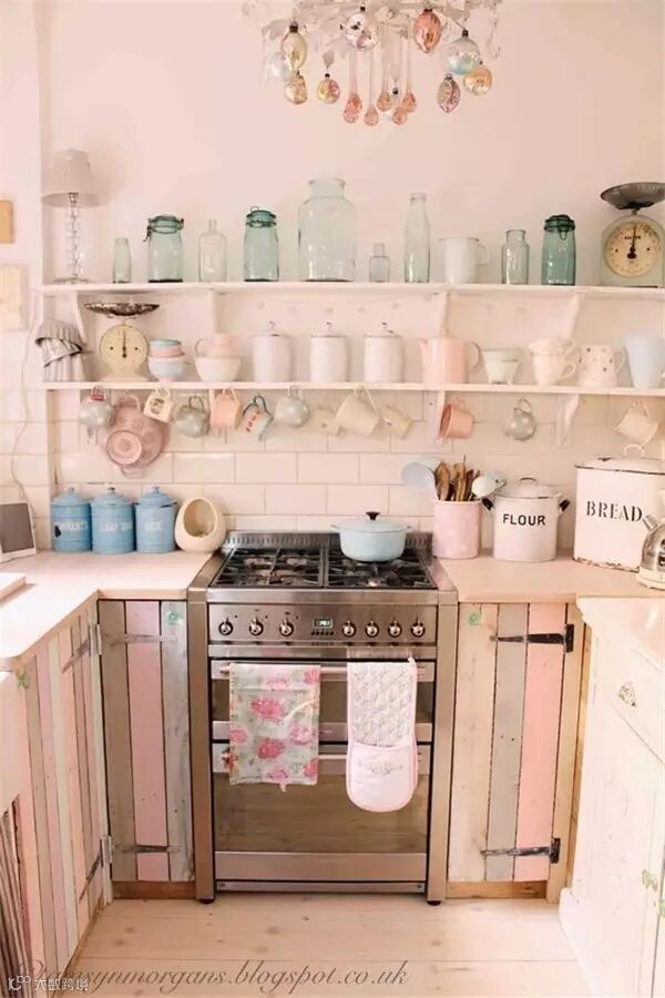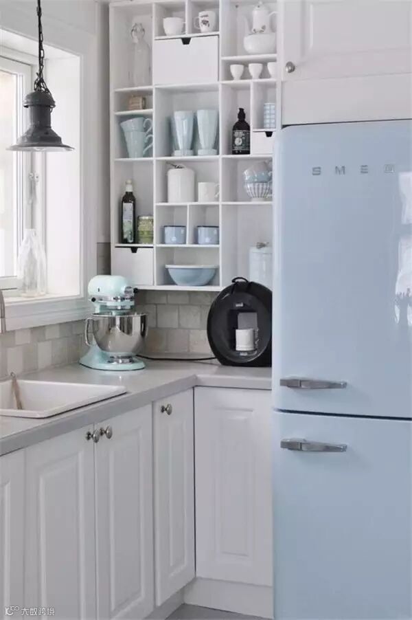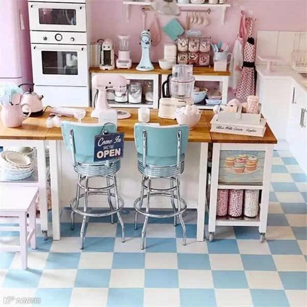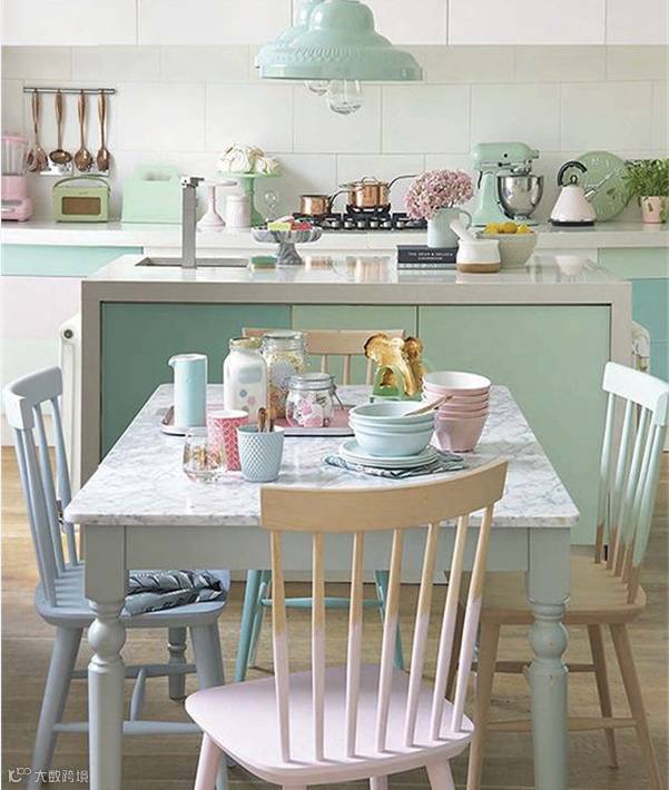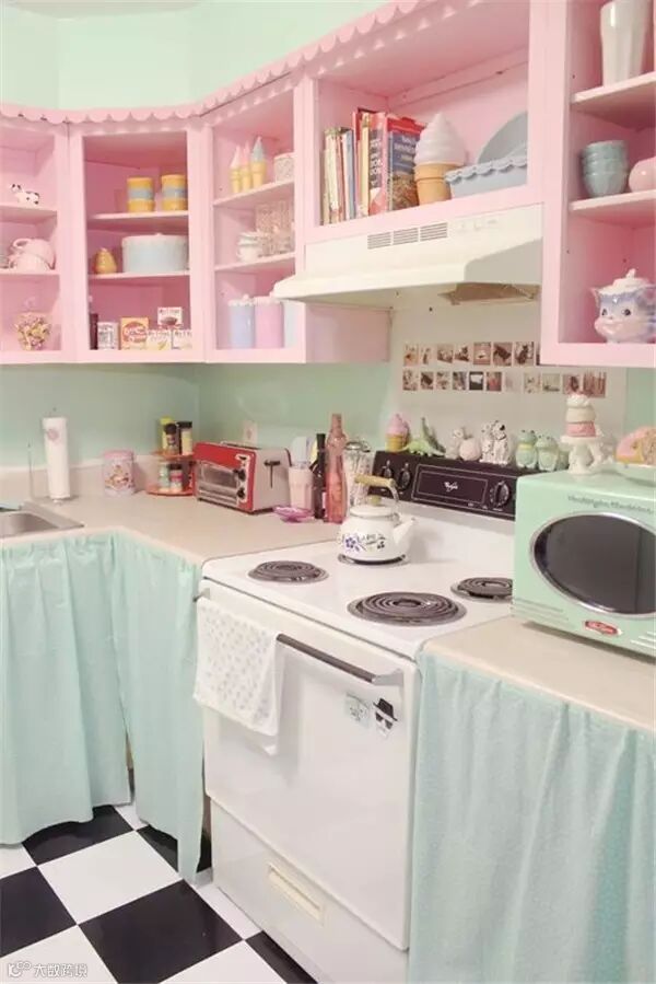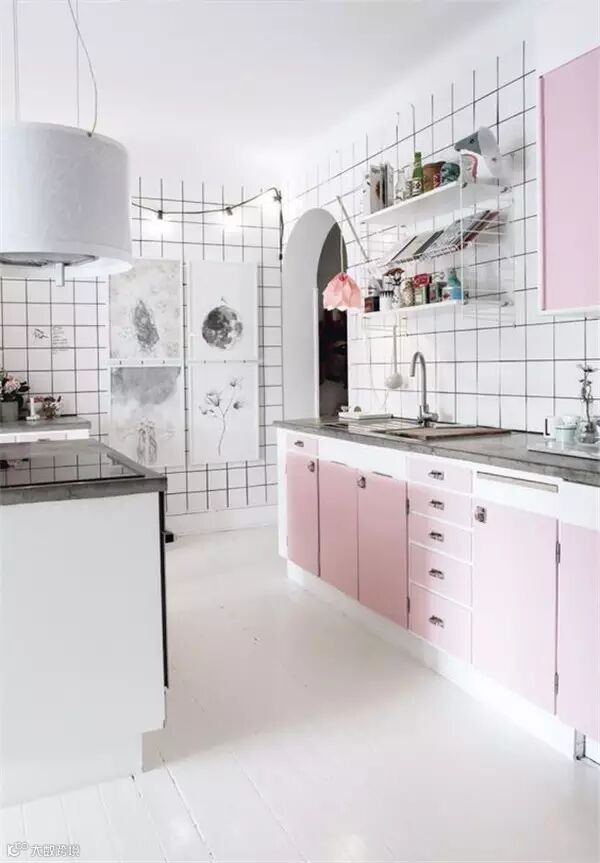 作为充满少女心的少女,身边当然少不了萌萌哒马卡龙色了,粉粉嫩嫩看的心都要化了,若是再能拥有一个这样的满是马卡龙色的厨房,是不是整个人要炸裂了,或许有些开放式的设计在中国并不实用,但是配色一样可以参考哈!
