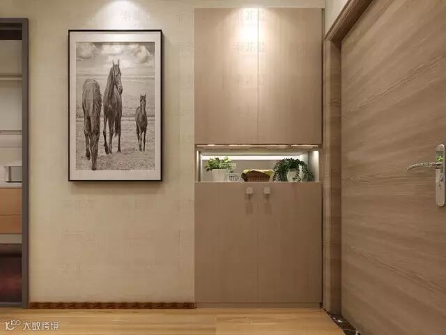 入墙式的设计,不占空间,上收纳下鞋柜,中间空出一个置物区,进门换鞋的时候随手放好钥匙,再也不用担心找不到啦。