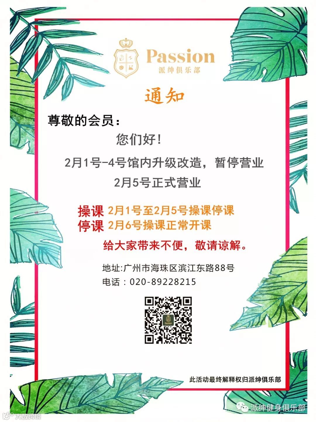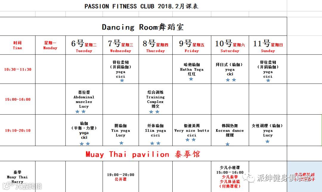 操课2月6~11号课程表