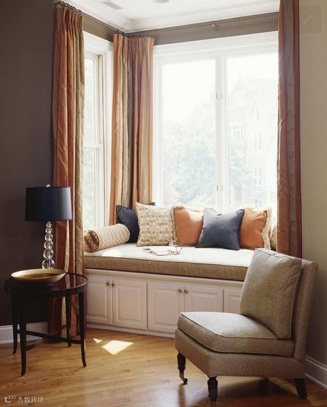 休息区:看见过很多设计,将客厅飘窗打造成一个休息区,在飘窗的位置放一个小床,对着的是一个小书吧,床上加几个小枕头,让人分分钟进入状态,就是这样的生活,每天早上醒来,都坐拥一片明媚之景,生活因此变得美好。