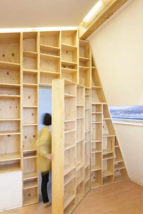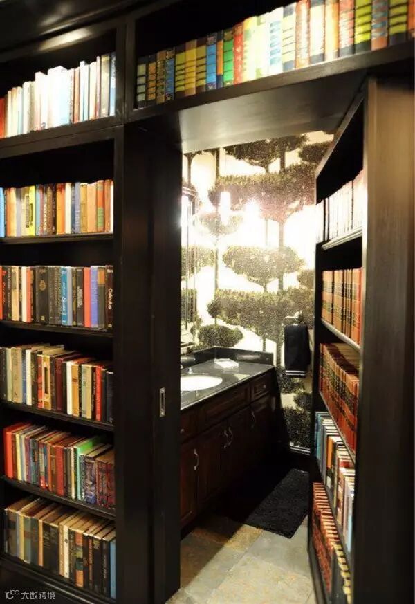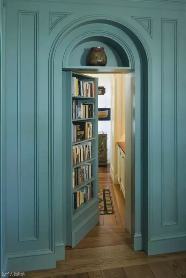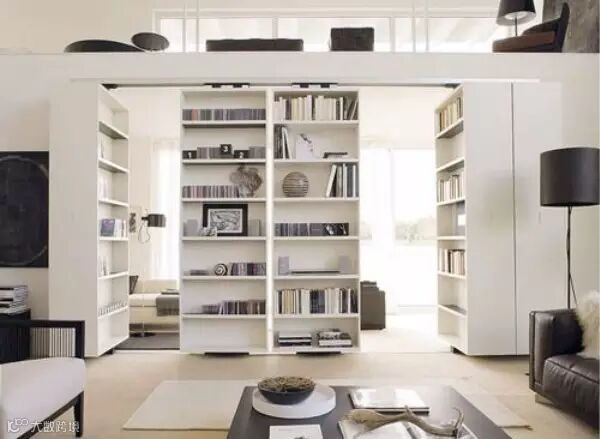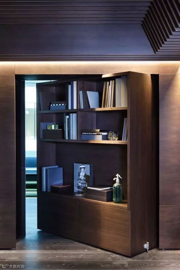 导读:暗门总是充满了神秘感,其中书柜门是最常用的设计。既能让空间得到分隔,又可以节省出一个书橱的空间,一举两