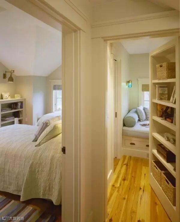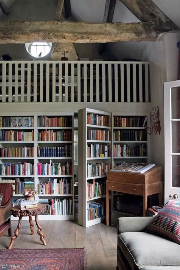 暗门总是充满了神秘感,其中书柜门是最常用的设计。既能让空间得到分隔,又可以节省出一个书橱的空间,一举两得。