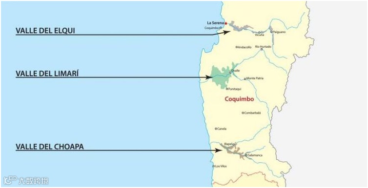 位于智利北端,科金博产区是较为年轻的产区,分为艾尔基谷(Elqui Valley)、利马里谷(Limari Valley)和峭帕山谷(Choapa Valley)三个子产区。