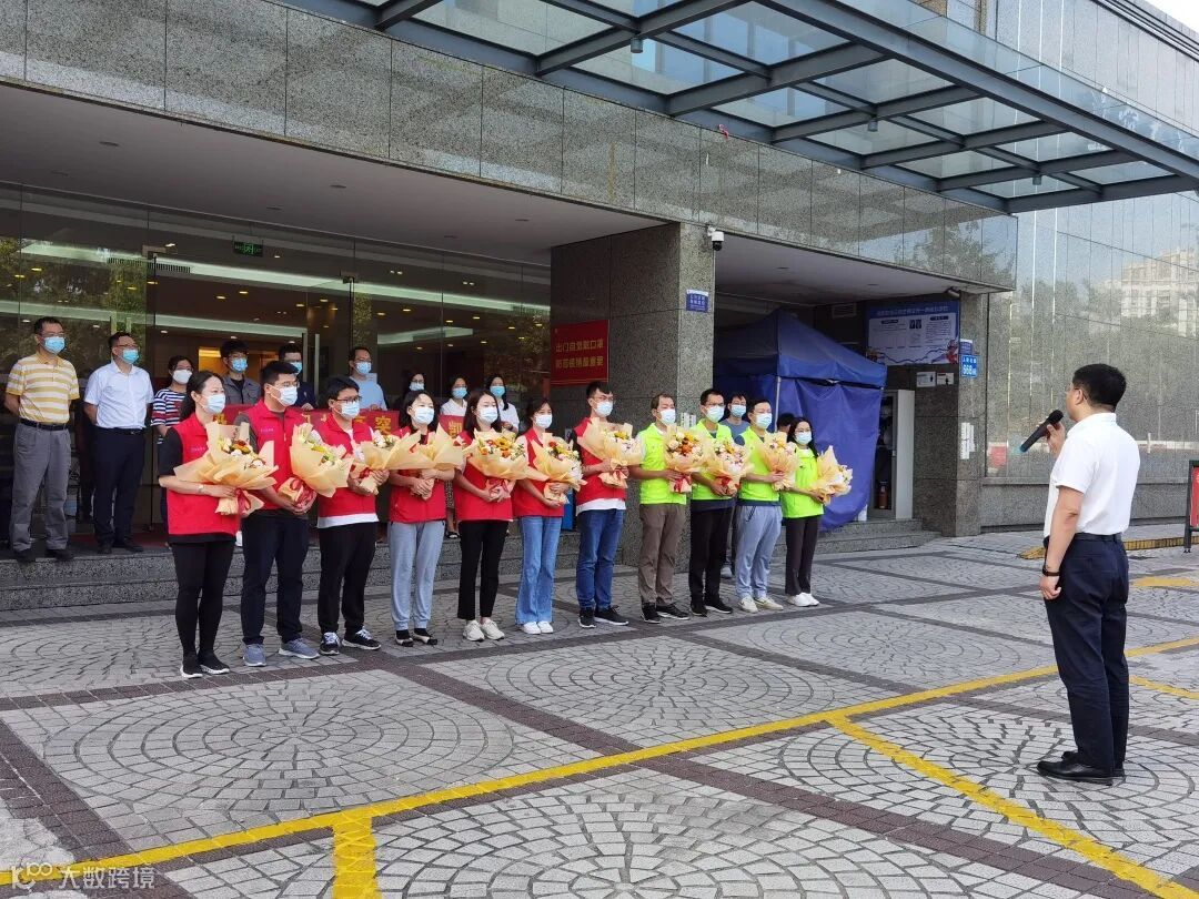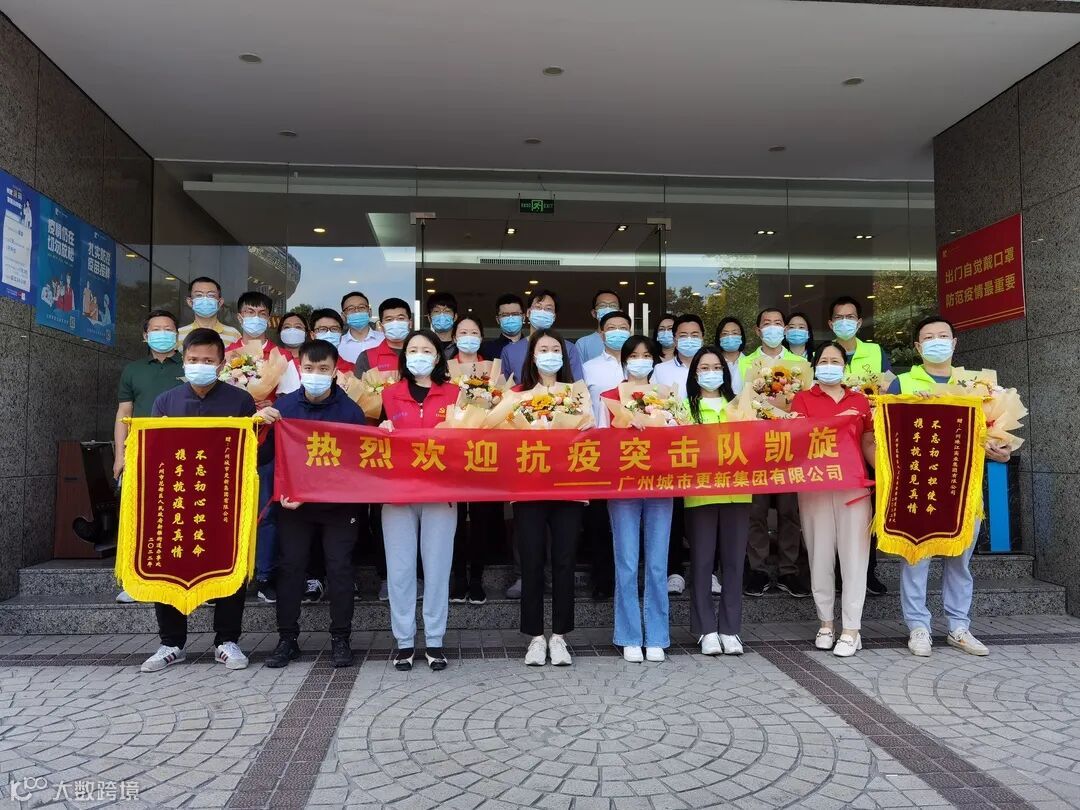 “热烈欢迎抗疫勇士们回家!你们辛苦了!”。10月30日上午,广州城更举行支援花都抗疫突击队员凯旋归来欢迎仪式,迎接11名支援花都抗疫队员平安凯旋。公司党总支书记、董事长答恒诚、党总支副书记廖慕慨、副总经理梁峻铖及各部室负责人参加仪式。
