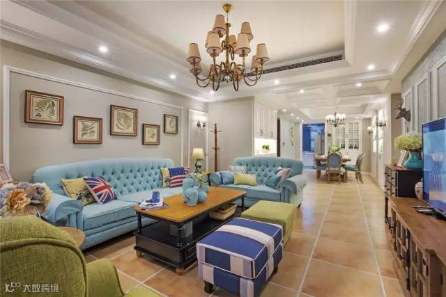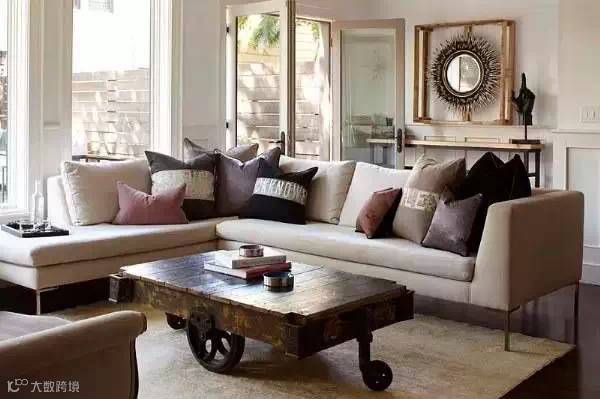 典型美式元素的抱枕打破色彩的单一,起到很好的画龙点睛的作用。