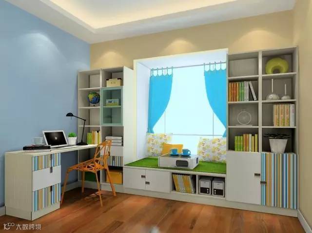 衣柜内侧巧妙融进去一个书柜,转角区域自然而然打造成学习区。一个紧凑的直角空间就解决了两个大难题。