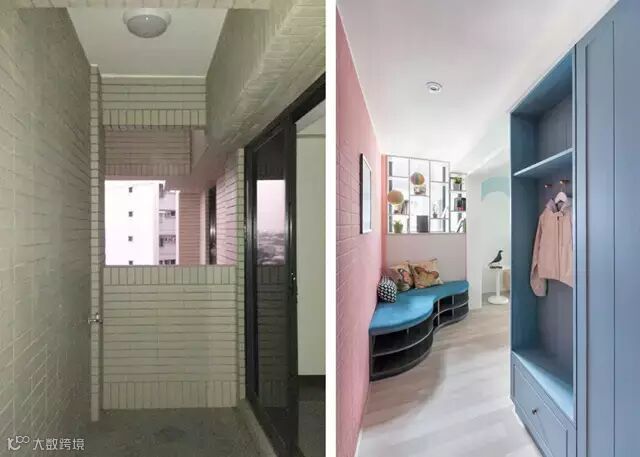 整个室内颜色看起来虽然很多,但并不显杂,围绕着”粉蓝黄绿“这四种马卡龙主色调尽情发挥,精细中不失俏皮,是姑娘们装修小居室的好参考!