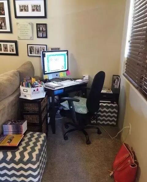 ▲迷你书桌斜放,位置更宽裕。