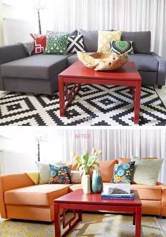 ▲换一个沙发套,风格从沉稳简洁变成明媚轻快。
