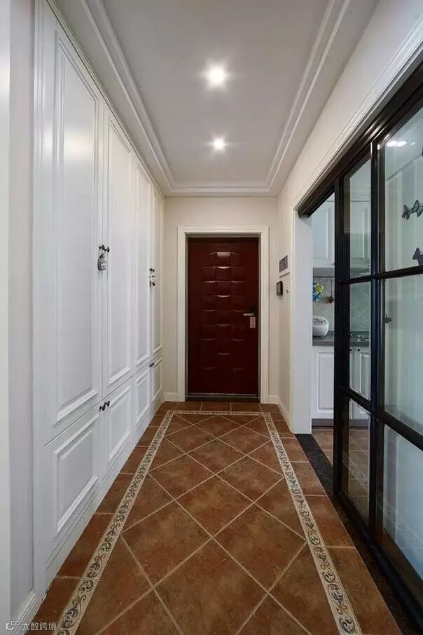 两居简约美式婚房,看到第一张图片就让我震撼了。地砖斜铺,玄关柜和厨房推拉门黑白对立,非常实用,做工真心不错。