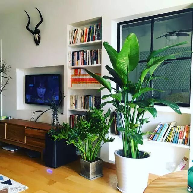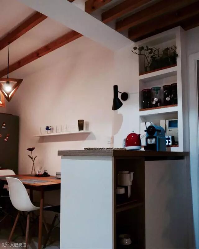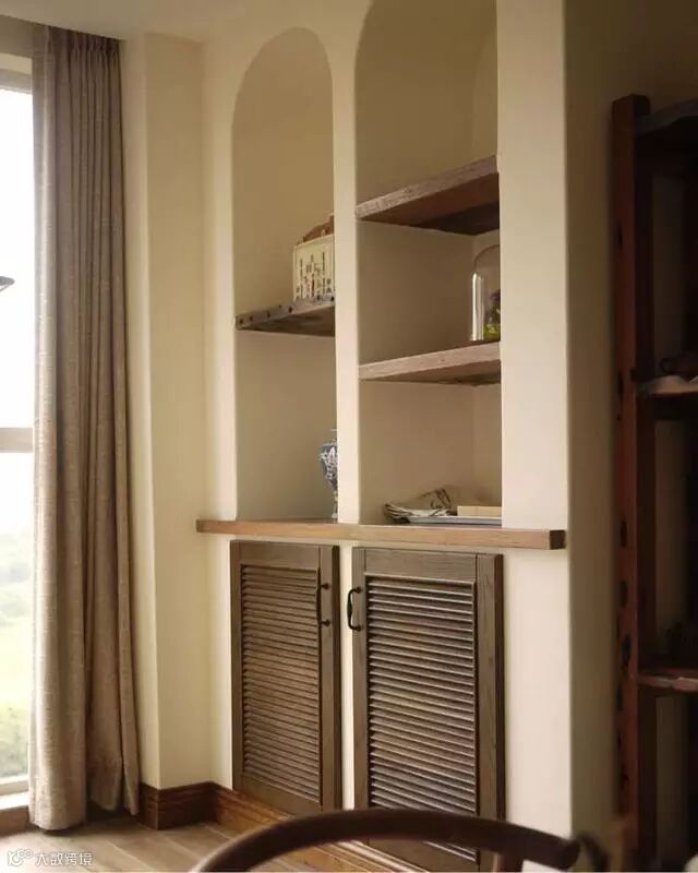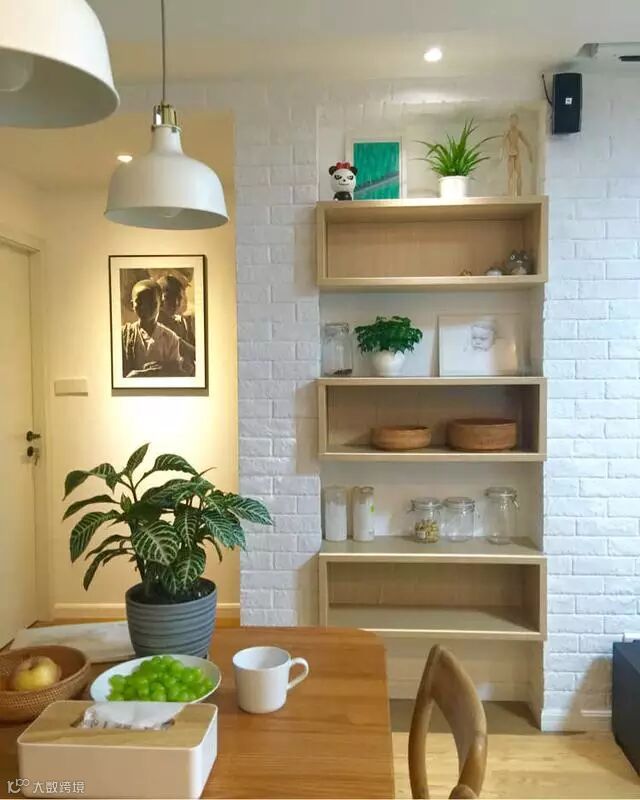 有规则的原木搁板柜,与白墙搭配再简单不过了~
