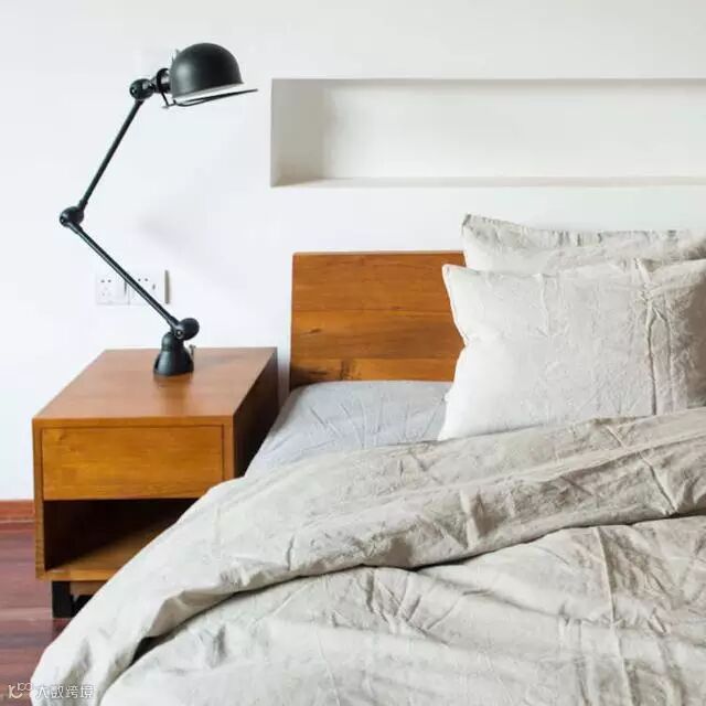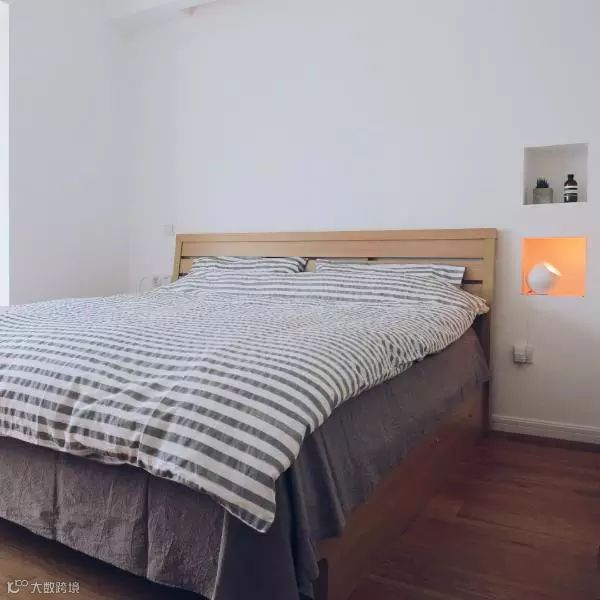 墙上留出暗格解决小物收纳,方便随手拿东西,床头柜只留一盏好看的台灯。