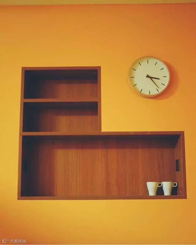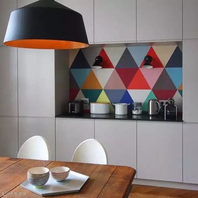 活跃的几何色块,丰富了整体墙面层次;不常用的东西全部收进柜子,餐厅始终保持整洁。