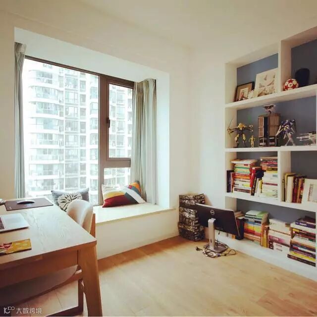 利用墙角搁板置放书本,连买书柜钱也省了~