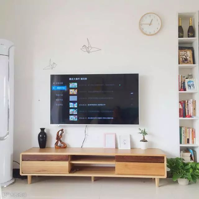 电视柜旁做个小小的窄柜,让客厅墙不那么单调!