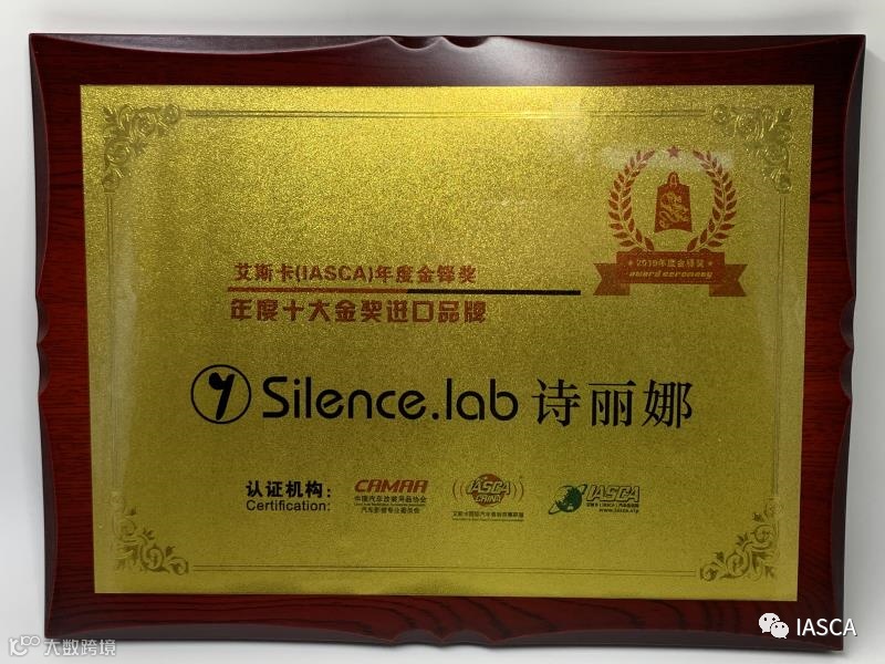 热烈祝贺Silence.lab诗丽娜荣获艾斯卡(IASCA)年度十大金奖进口品牌的奖项,并同时得到IASCA国际组委会给予的认可。