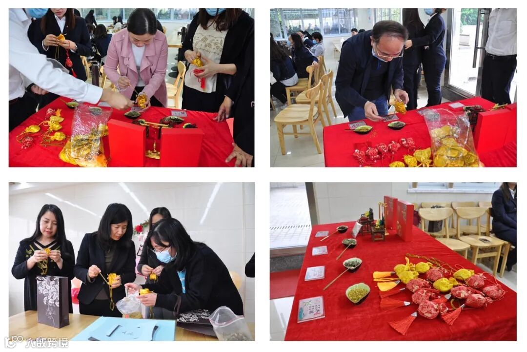 传承传统文化,巧手制作香囊。一个个色彩缤纷、精巧别致的香囊呈现在眼前,香气弥漫开来,沁人心脾。一个个的香囊细密的针脚蕴含了大家满满的心意和祝福,整个空间都洋溢着浓浓的欢庆氛围。