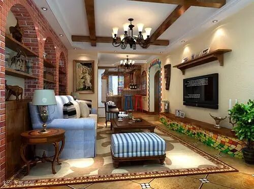 代表一种特有居住环境造就的极休闲的生活方式,自然素材融入装饰细节之中,拱形的浪漫空间、不修边幅的线条、纯美的色彩方案,空间布局形式自由,颜色明亮、大胆、丰厚却又简单。