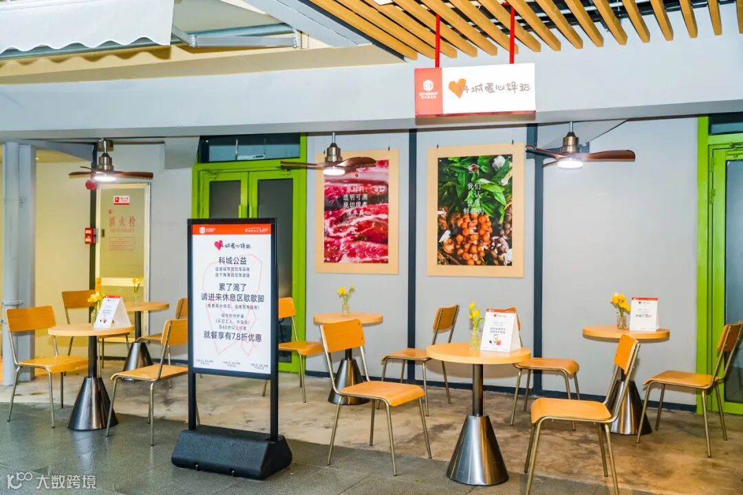 科城里社区食堂位于广州黄埔区前景街14-18号科景苑C区,总建面约639㎡。这里不仅是一个食堂,更整合了“山野超市”“闲情逸坐”“宠爱之家”“暖心驿站”等功能区,致力于为园区职工和周边居民打造一个集餐饮、零售、学习、萌宠互动于一体的一站式生活社交新聚场。