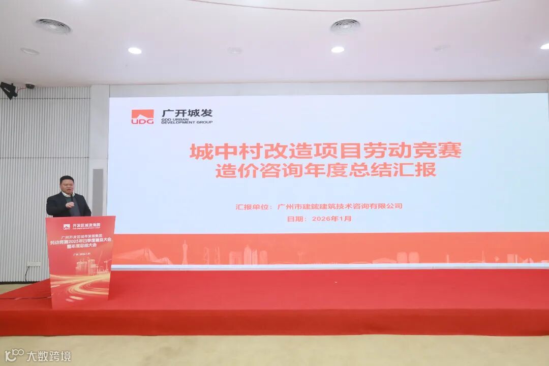 1月30日,区城发集团召开2025年四季度暨年度劳动竞赛复盘大会。本次大会旨在通过全面总结集团2025年劳动竞赛成效,对在竞赛中表现突出的优秀单位及个人进行表扬,推广竞赛中形成的优秀管理模式和实践亮点,进一步激励各方攻坚动力,持续推动城中村改造项目实现高质量建设。广州市住建局、黄埔区委办、区城市更新局、区规划和自然资源局、区住建局、知识城开建办、相关街道以及区城发集团、各项目参建单位等有关领导和代表参加会议。