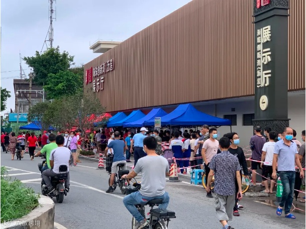 沥滘旧改项目组5月底在政府有关部门及街道、居委、沥滘经联社带领下,按政府相关要求迅速落实完成西区签约中心“新冠疫苗”临时接种点等候区、登记区及检验区的场地布置工作。在圆满完成作为疫苗临时接种点的任务后,继续响应政府号召,将东、西区展厅布置为临时核酸检测点,积极配合海珠区全员核酸检测工作。项目组紧急调配各类物资支援现场,全力配合、保障全员核酸检测工作,践行我为群众办实事。