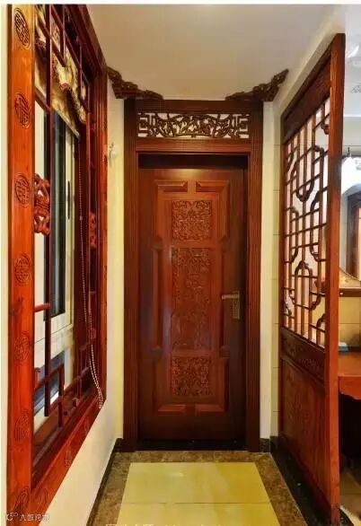 将不同的纹路进行糅合在一起,或规则或不规则,或者将两种融合在一起。这样制作出的中式 木门的木质花纹纯正自然,在亮泽度,光亮感上都十分讲究,风格浓郁突出,给人一种大气的美感。