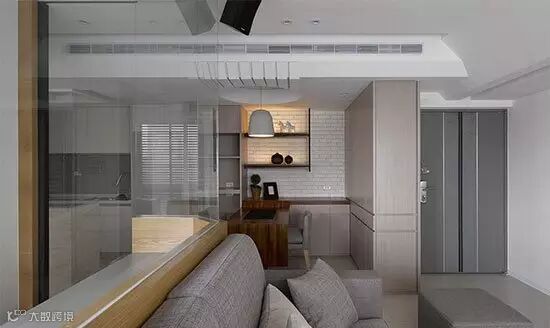 考虑到公寓采光条件极佳,所以设计师充分发挥空间优势,通过穿透、延伸的清玻介面,汲取并分享了向阳面光景,使每个角落都能充分地沐浴在日光之下。建构出理想的光感空间。