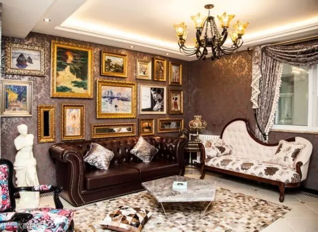 富丽堂皇的视觉享受,与简约的几何茶几结合达到视觉平衡。