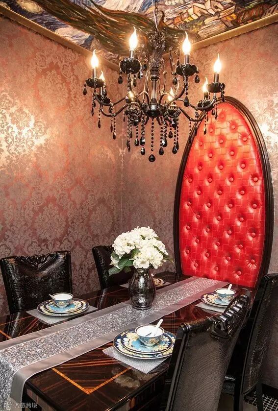 火红的热情洋溢在整个空间,顶面用梵高的星空画装饰,让人忍俊不禁!