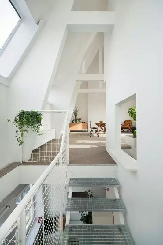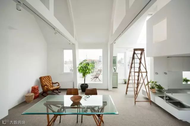 日本MAMM Design工作室在荷兰阿姆斯特丹改造了一处有着88年历史的老公寓,屋主位于最上面两层包括一个阁楼空间。由于屋主希望新的居所要明亮,于是设计师将所有的墙面都漆成白色。