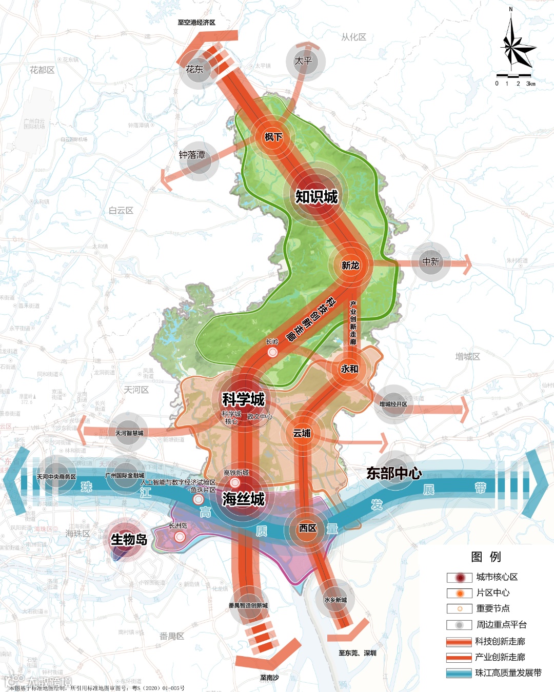 知识城“一核两心多园”的城市格局已初步成型,教育、医疗、商业、交通、生态等配套日趋完善,着力打造现代化的知识新城。