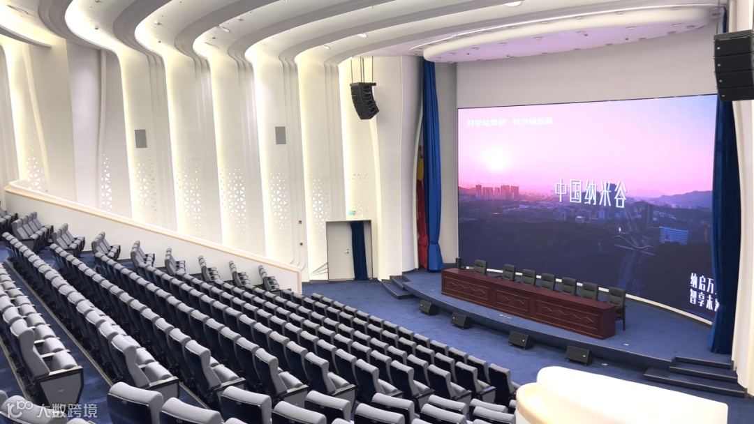 路演中心、多功能宴会厅,可容纳约200-400人,配备舞台、LED屏幕、专业音响及灯光设备,可为集团年会、产品发布会等活动场地租赁使用。