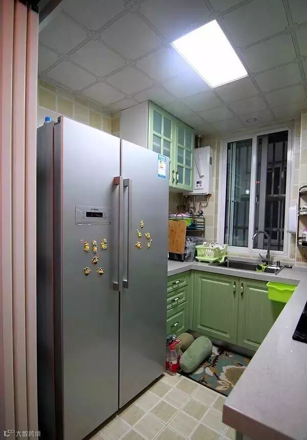 ▲ 厨房虽小,冰箱却大,可以存放更多食物