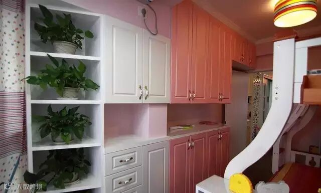 ▲ 儿童房入口设计成隐形门,平时关门的时候可以在视觉上扩大沙发背景