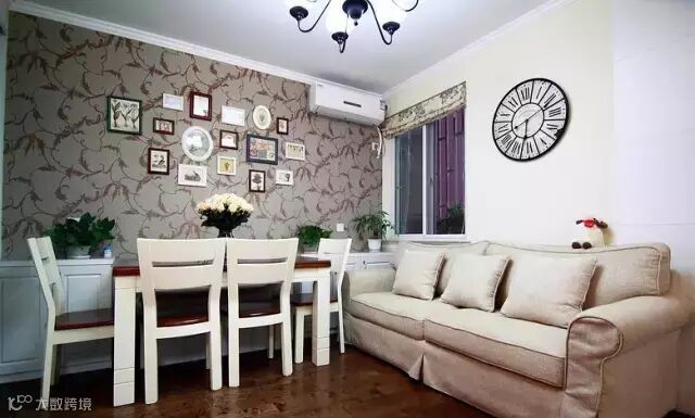 ▲ 餐桌边上的背景用壁纸铺贴