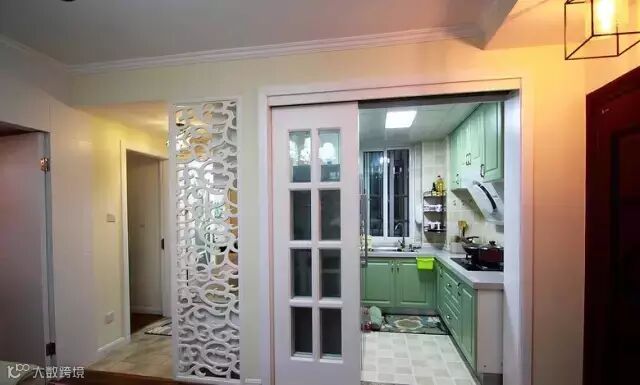 ▲ 左边是洗手间干区,右边是厨房,厨房移门采用吊轨移门,可以方便的打扫地面卫生