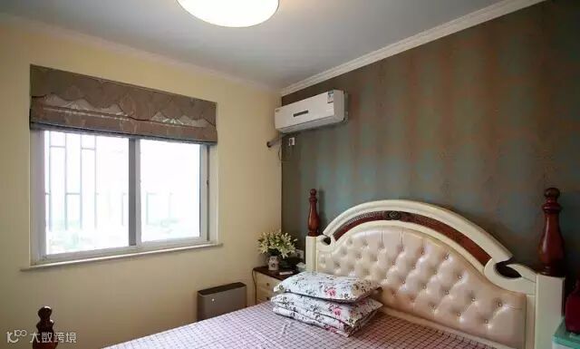 ▲床头背景深色壁纸陈铺