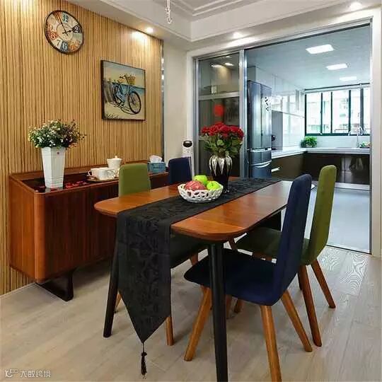 餐桌椅的色彩,与主体颜色包括餐边柜的颜色完全搭配,精致从细节处体现。