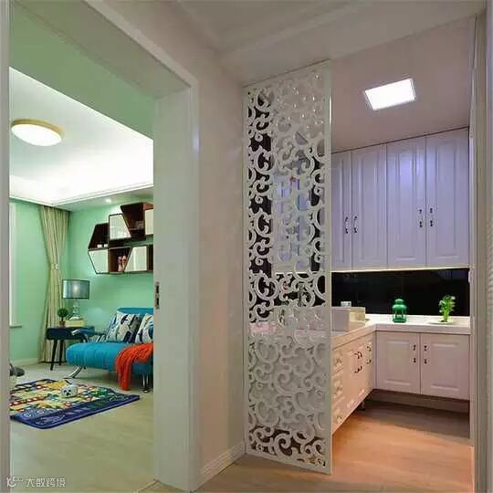 卫生间的墙面用镂空雕刻做为隔断,分隔了空间又保证空间的通透。