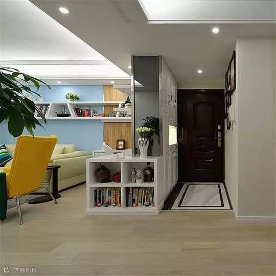 进门处采用了黑白色造型的大理石,简单又素雅,门口一侧做做了鞋柜和收纳柜,储藏空间又多了一处。