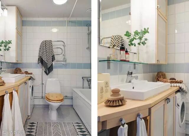 ▲ 浅色调卫生间放置了洗衣机和浴缸