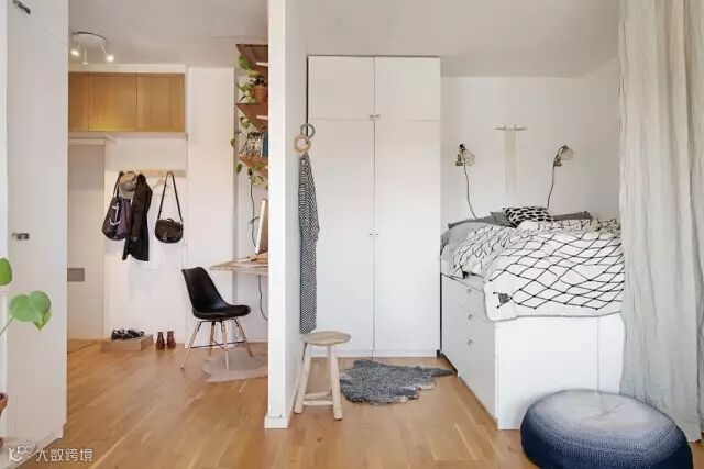 ▲ 全开放式设计通过布帘来隔离卧室保持隐私性
