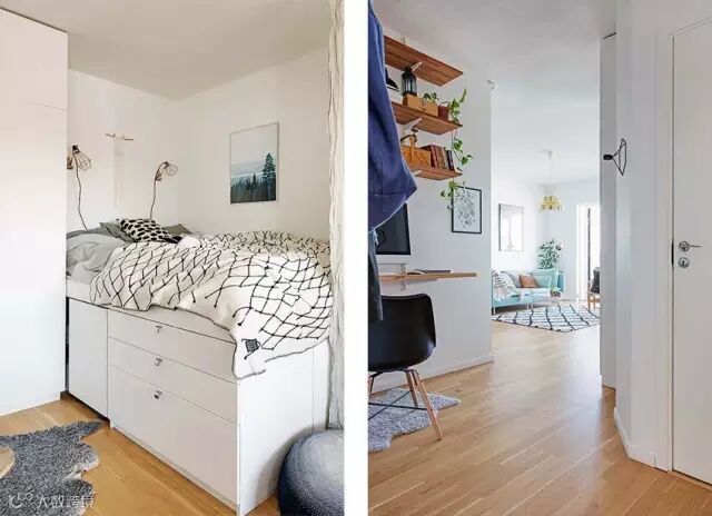 ▲ 卧室床做了加高设计,床下的空间全部做成收纳